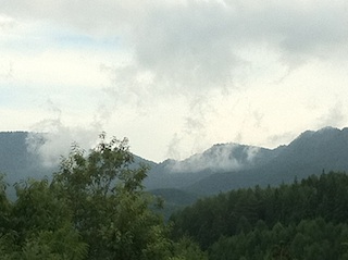 薄墨の雲谷包む山々
