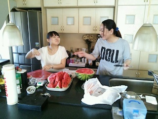その後、私はスイカを二階の冷蔵庫に入れたり